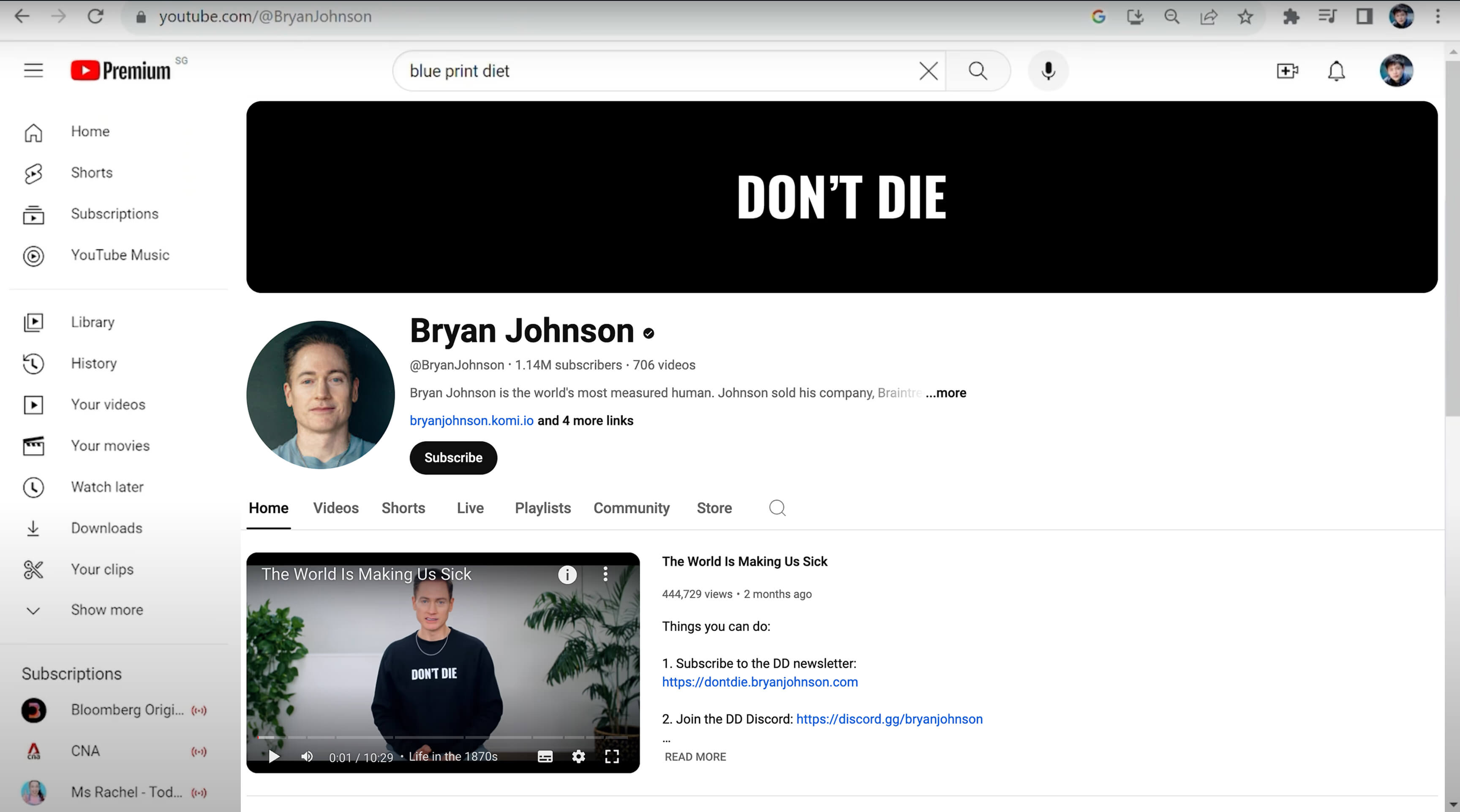Bryan Johnson is another crazy guy trying to live forever on YouTube and documents his story.
