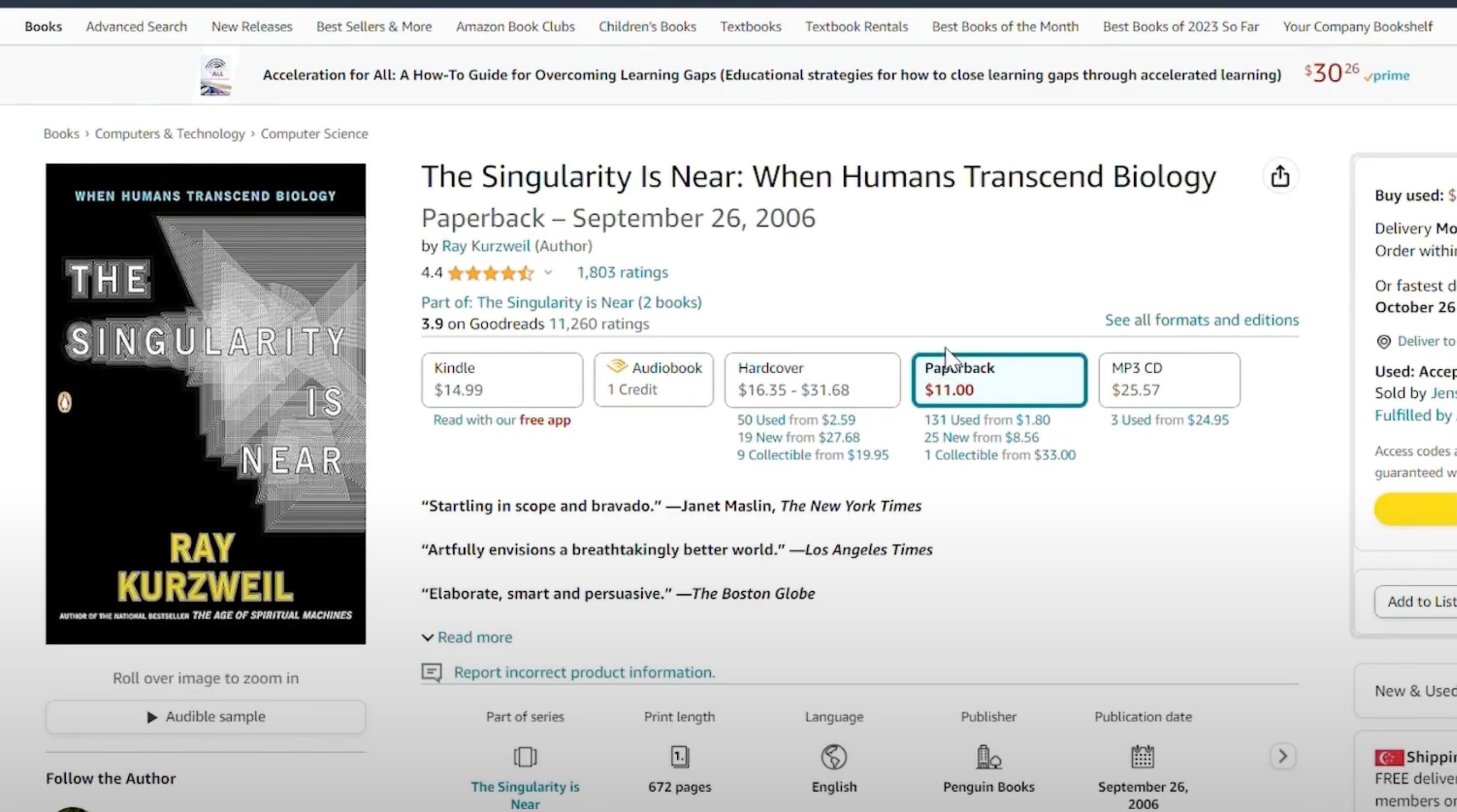 There are books, obviously—The Singularity Is Near by Ray Kurzweil.