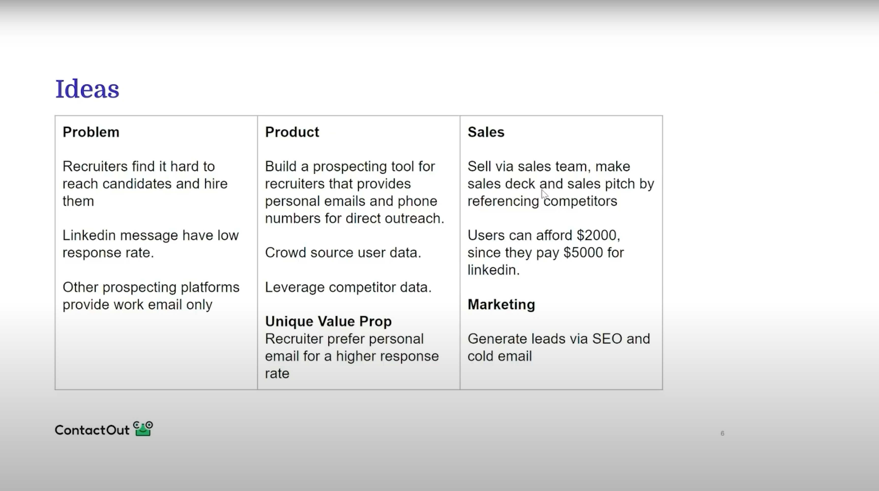 We came up with a bunch of ideas for ContactOut by studying 100s of companies, talking to industry experts and users.