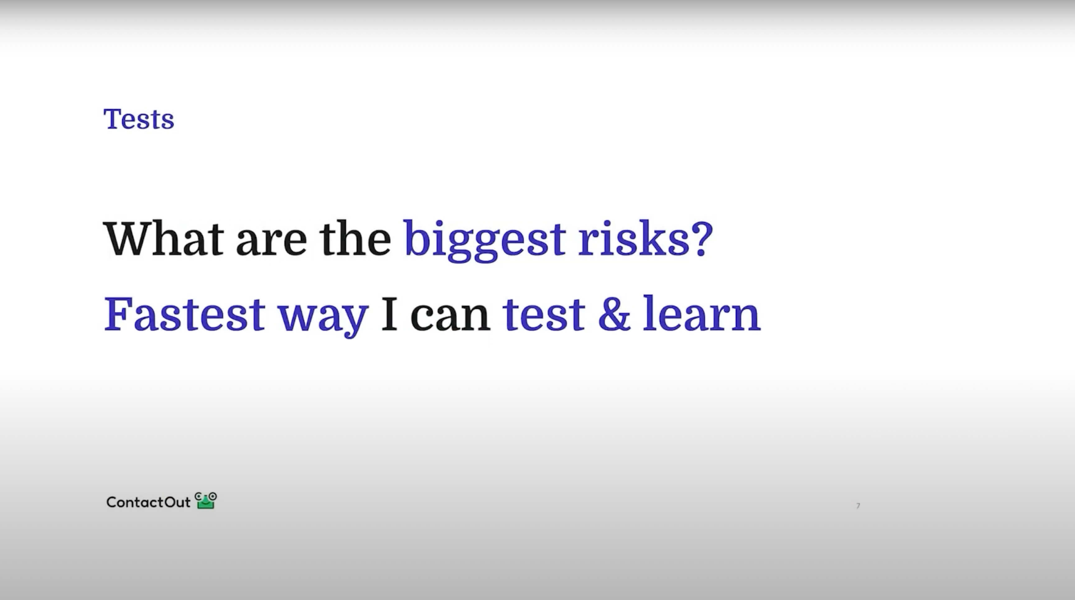 We want to ask ourselves what are the biggest risks on what is the fastest way to test and learn?