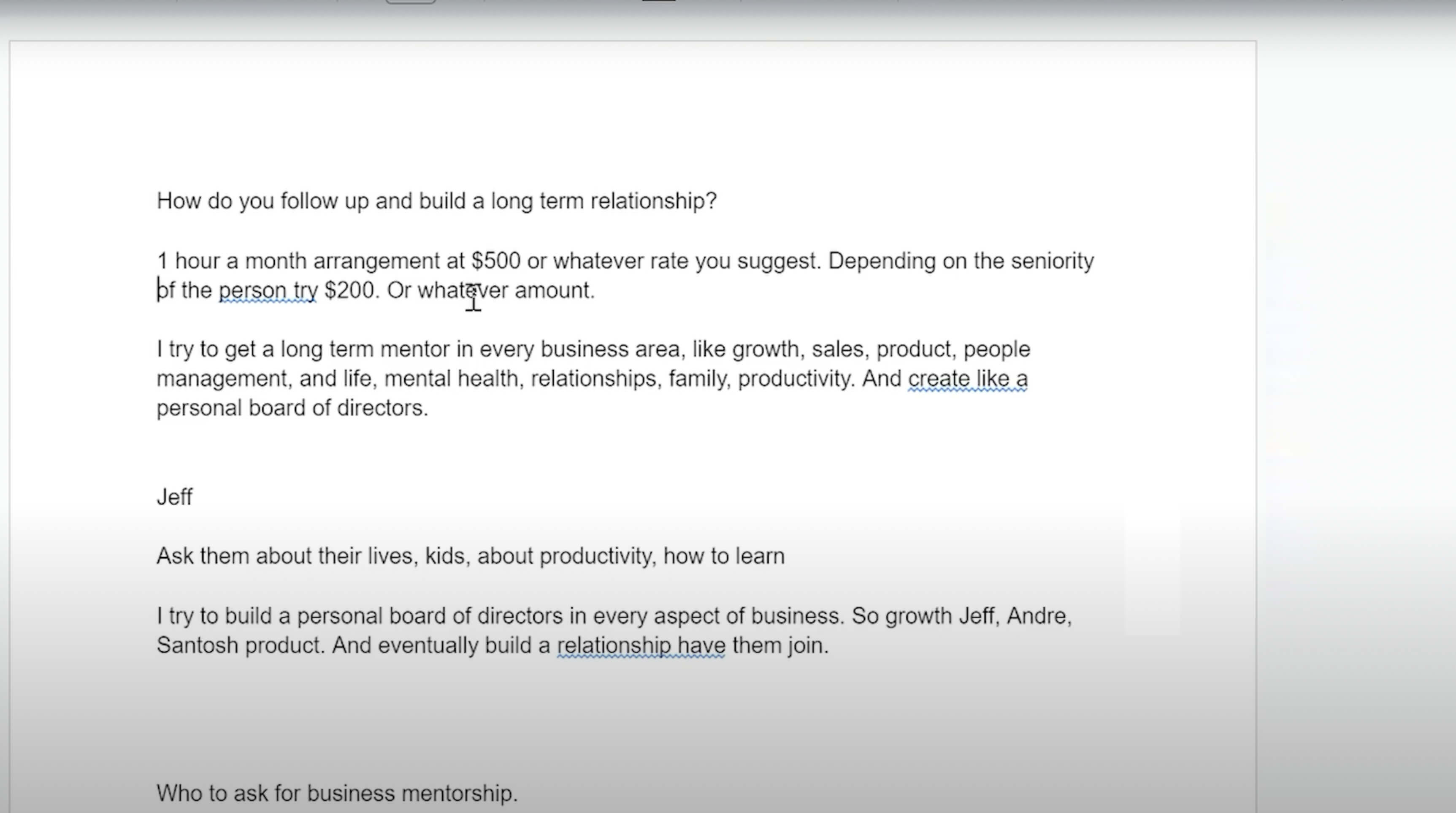 Eventually you’d get mentors in every area of business: growth, sales, products,