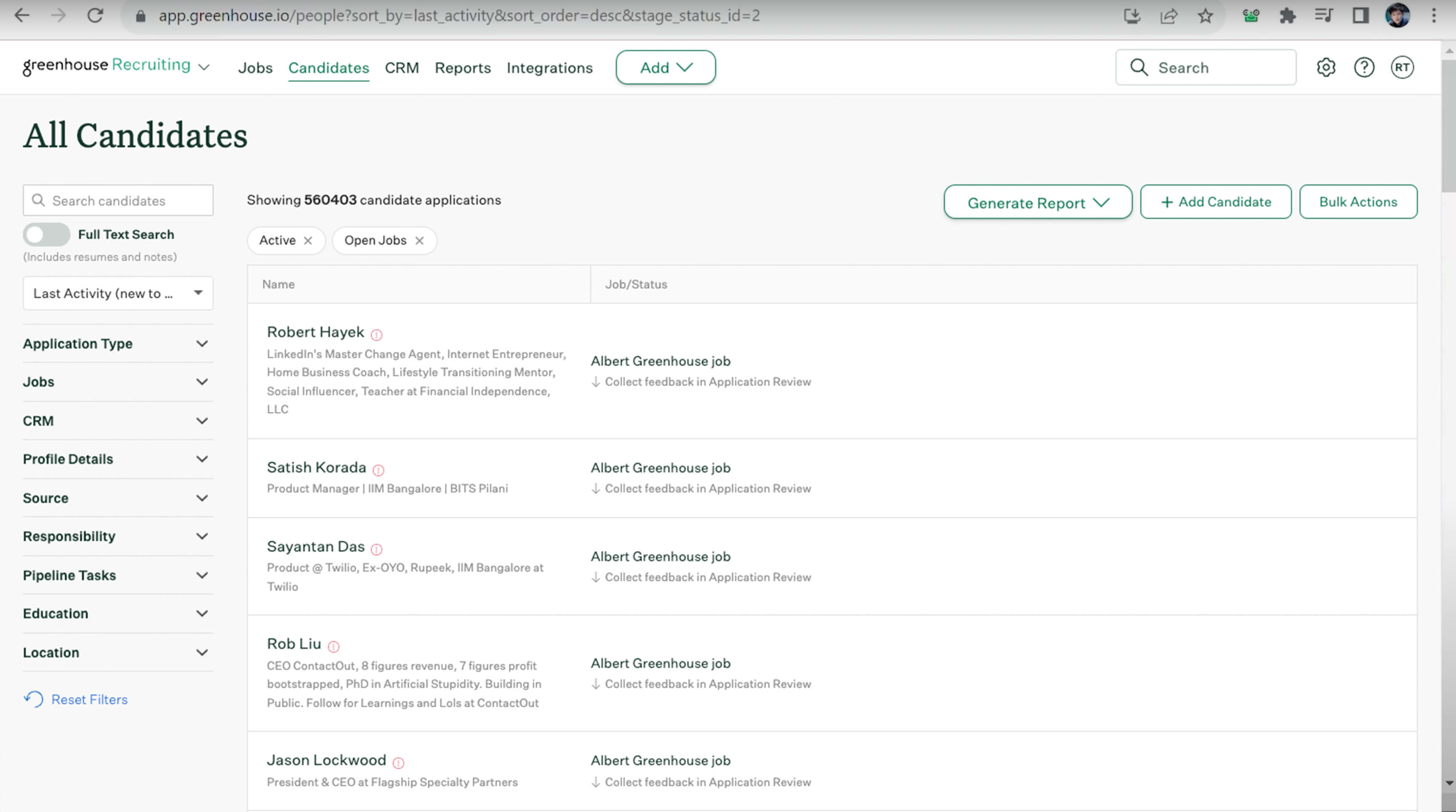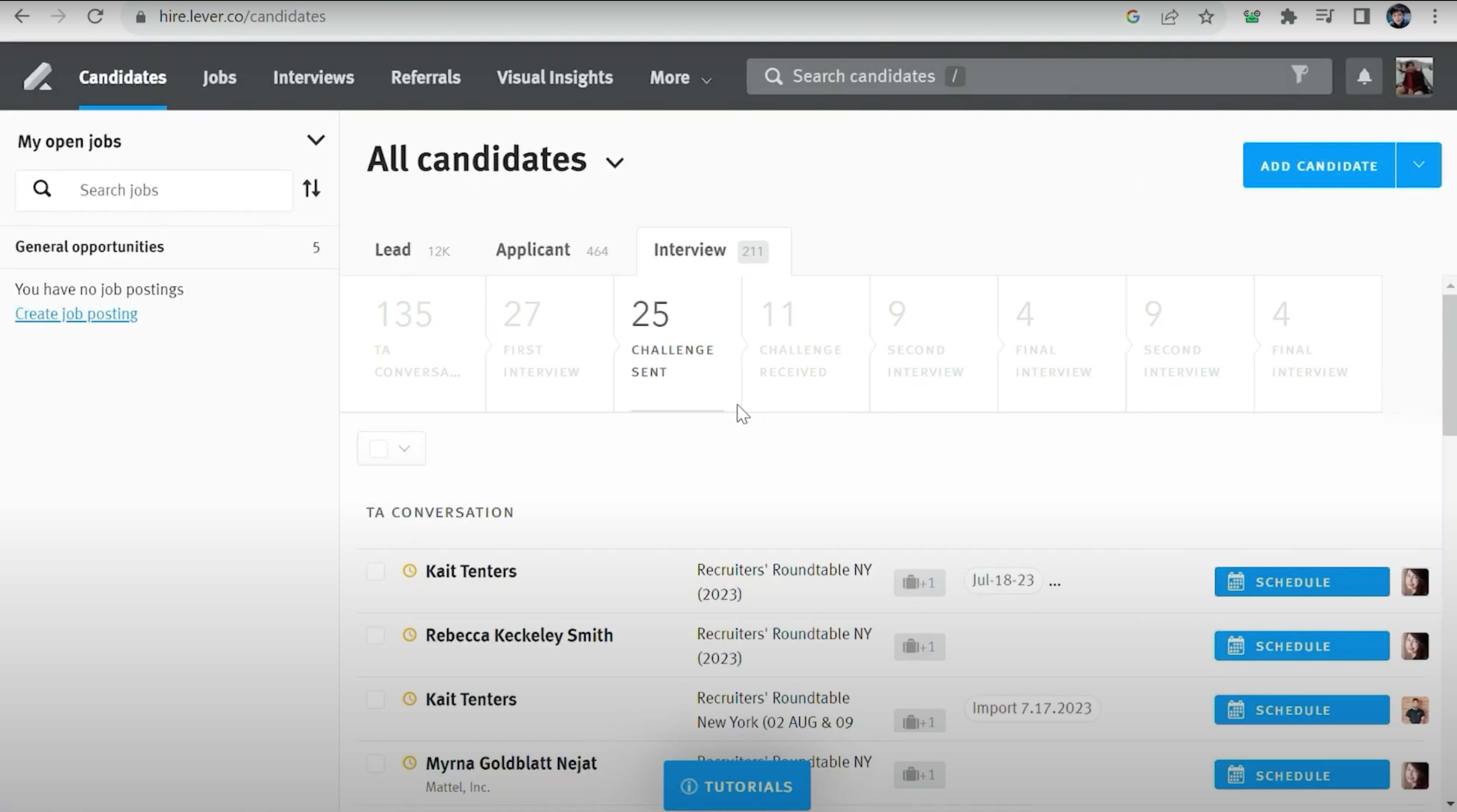 People would have a applicant tracking system to store candidates and track their progress like Lever or Greenhouse