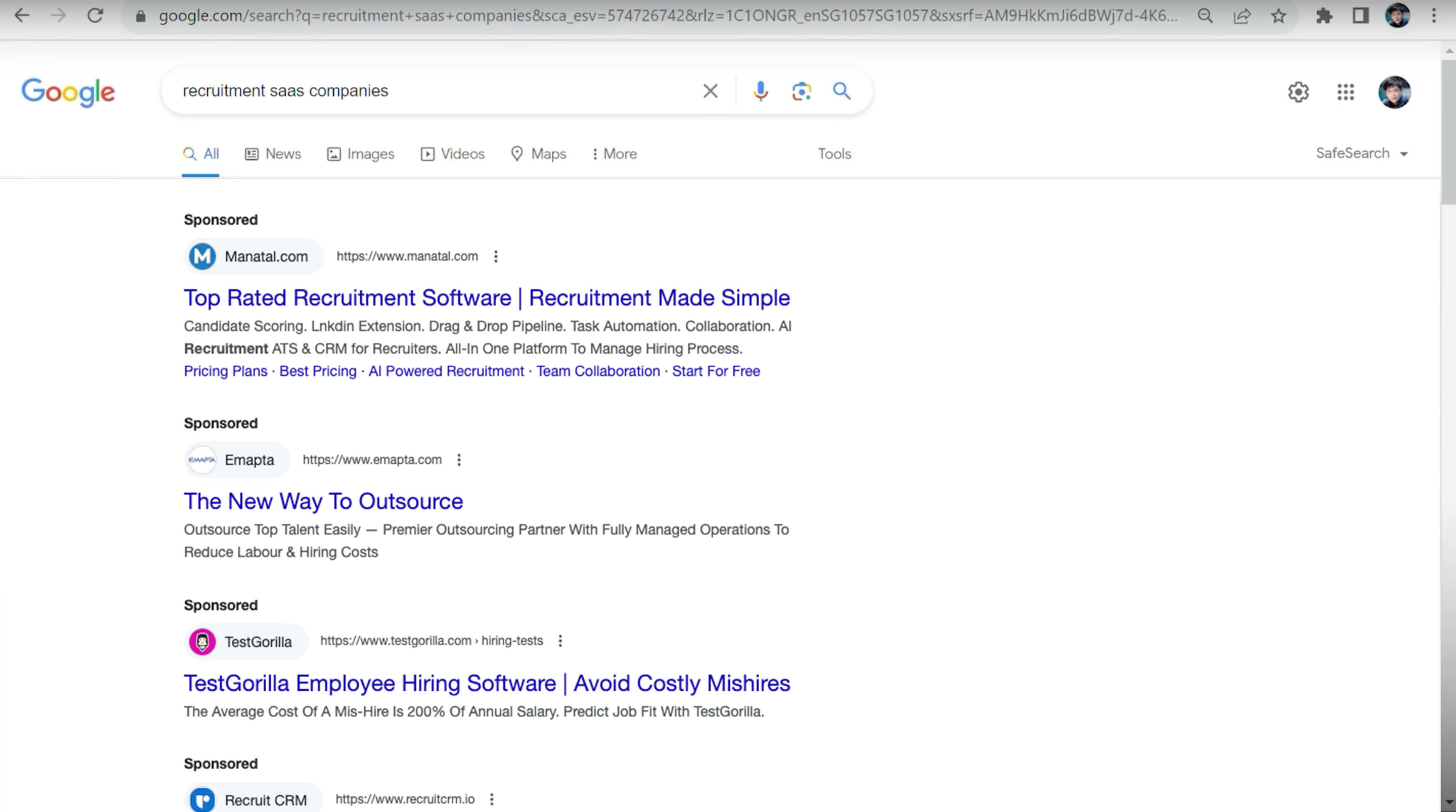3: Do a basic Google search for companies in the recruiting space and get like lists of companies.