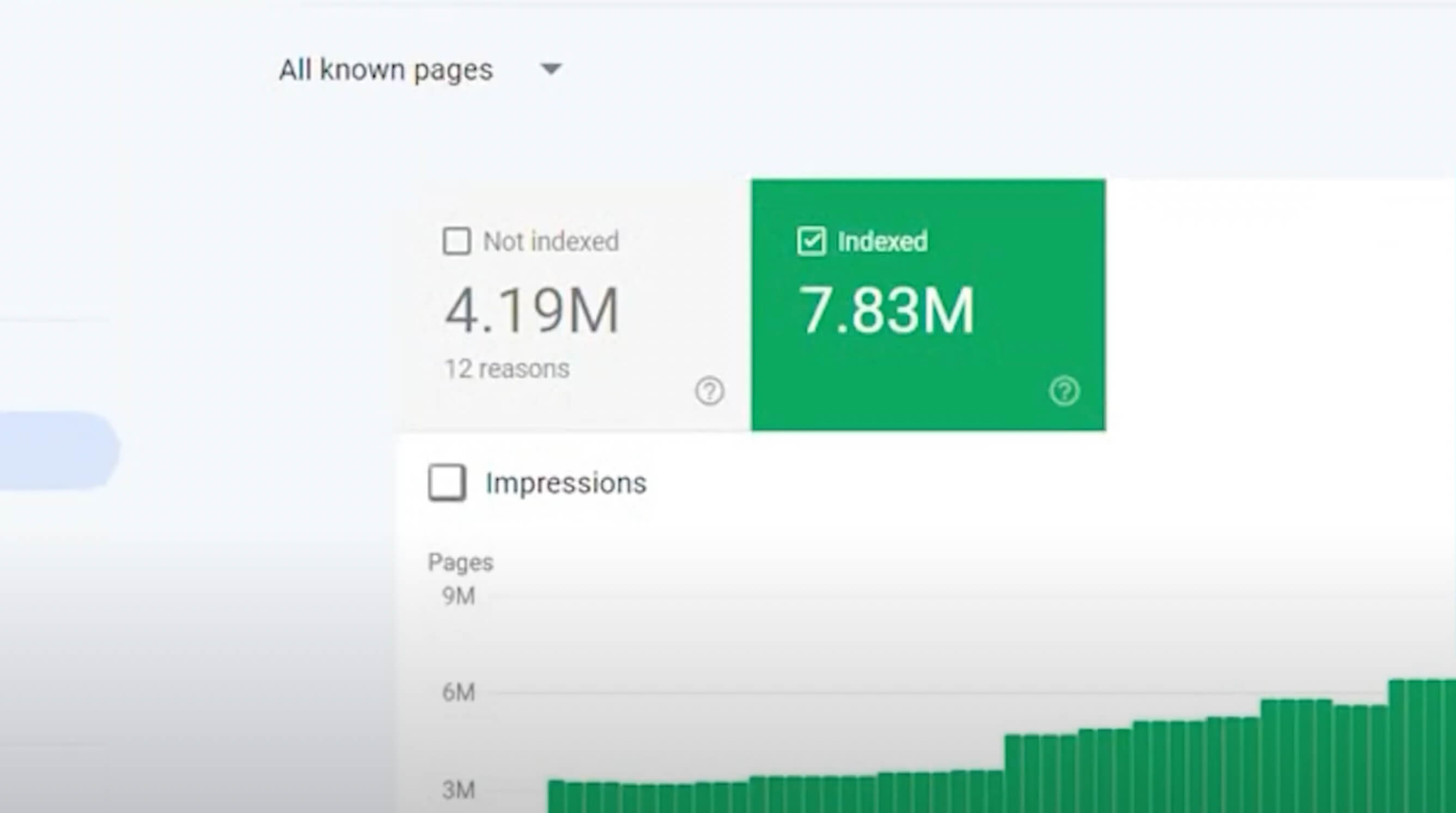 Also, the number of pages you currently have indexed — we have quite a lot, nearly 8 million pages indexed. So, to get more pages indexed is not too easy for us. Generally, we find that when you have a lot of pages, it gets harder.