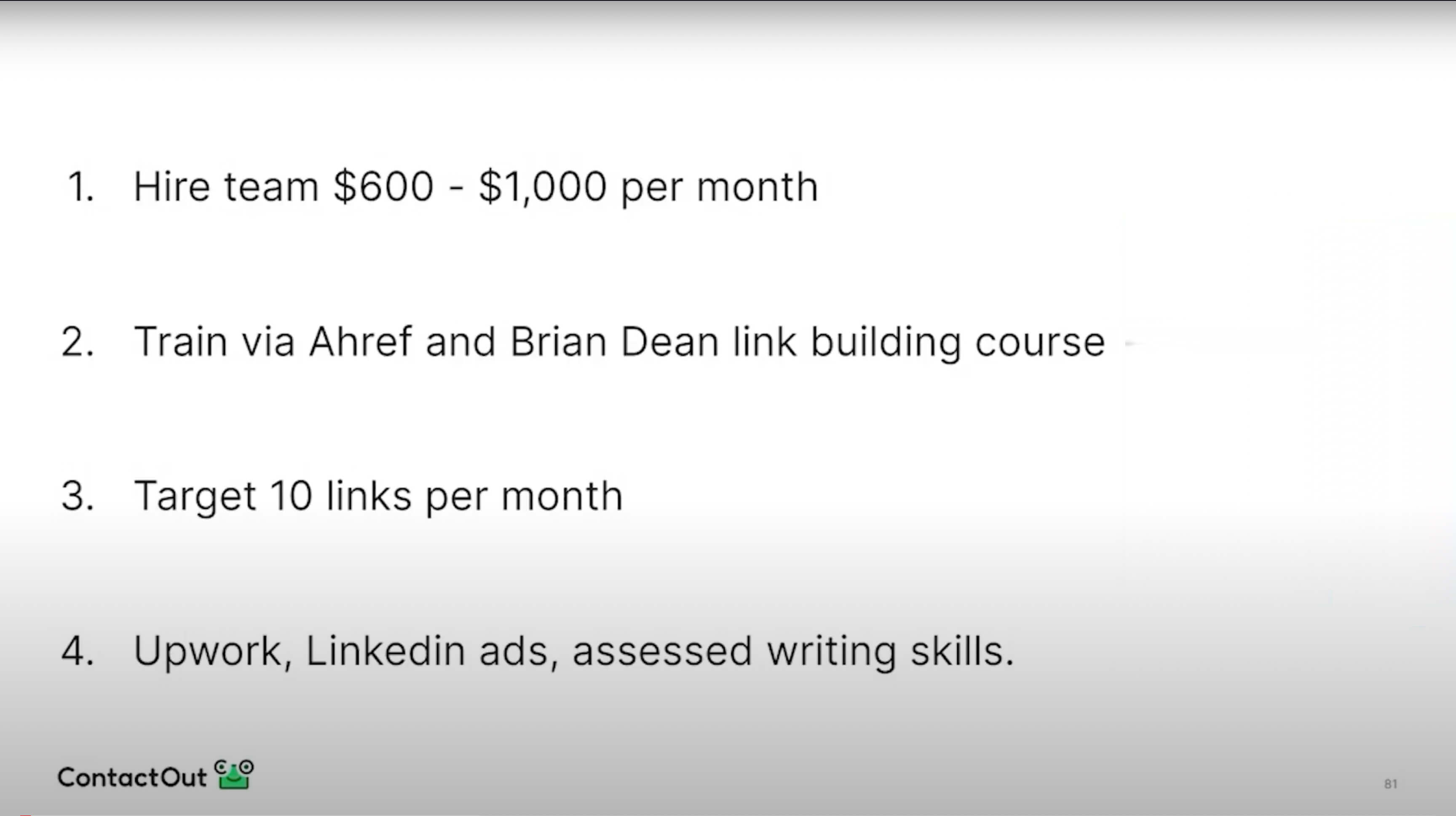 We have four team members, and we put them onto the Ahrefs content and Brian Dean's content with his link-building course.