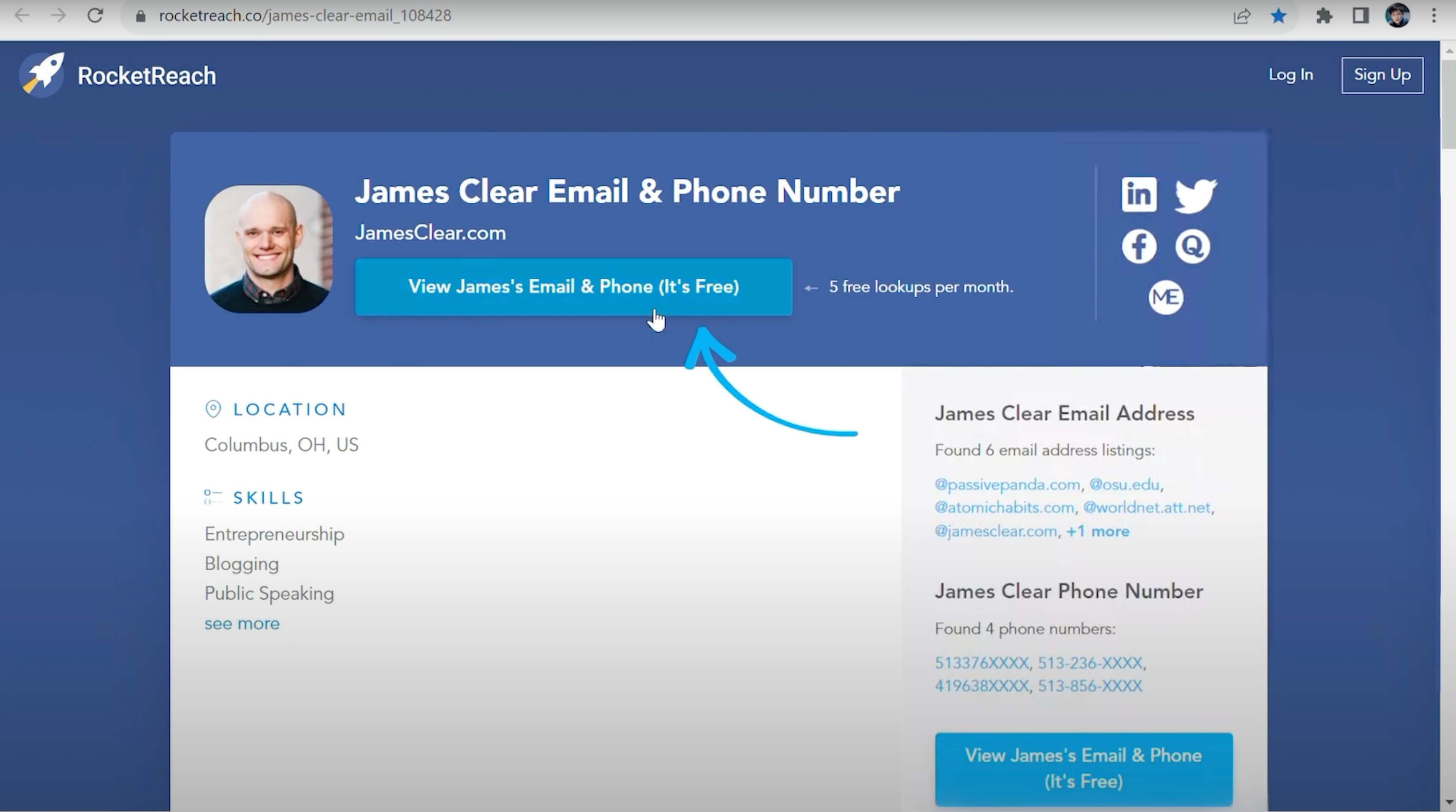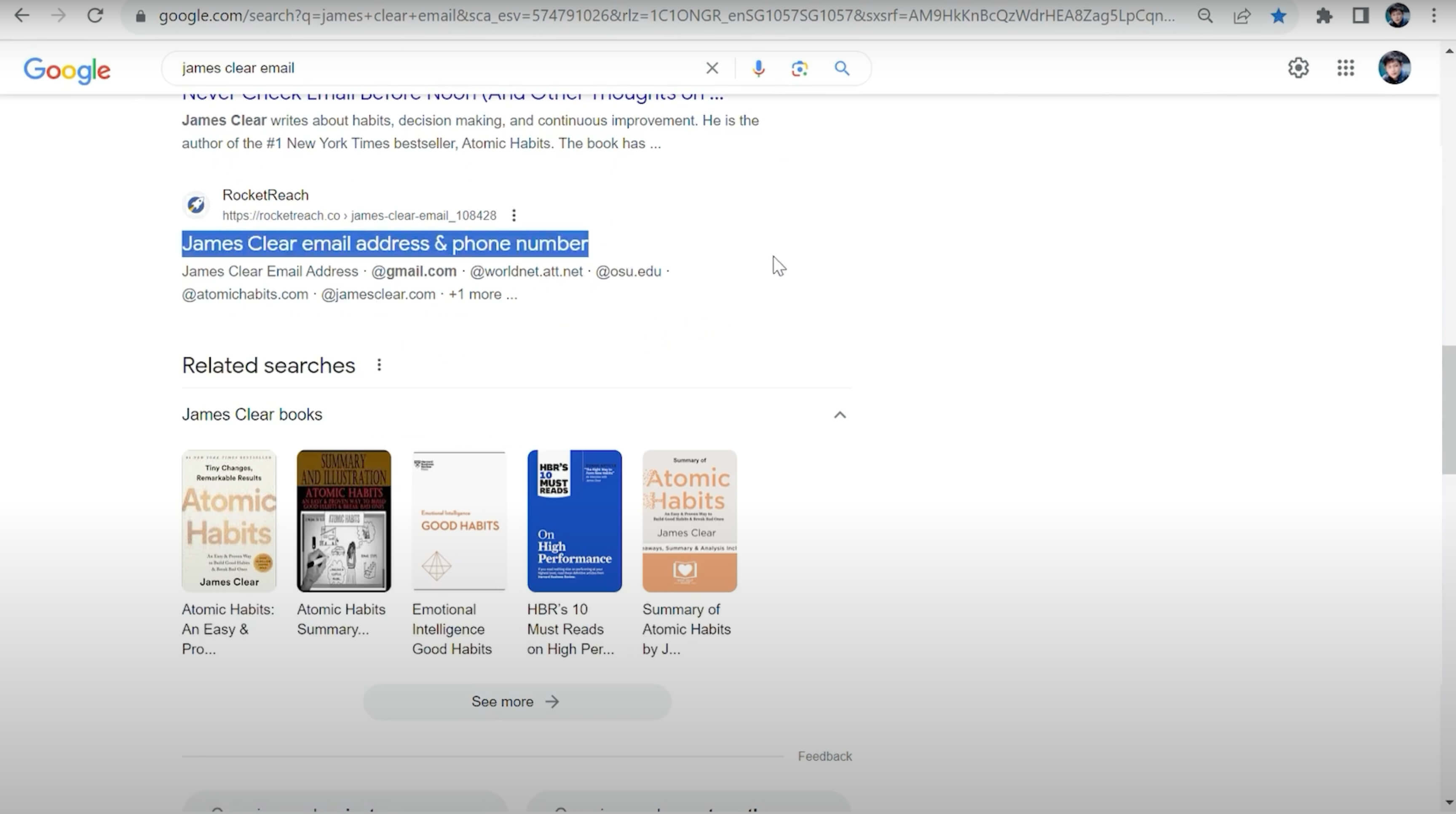 So if you search google for terms for like “Elon Musk’s Email” or “James Clear’s Email” a result for Rocket Reach appears.