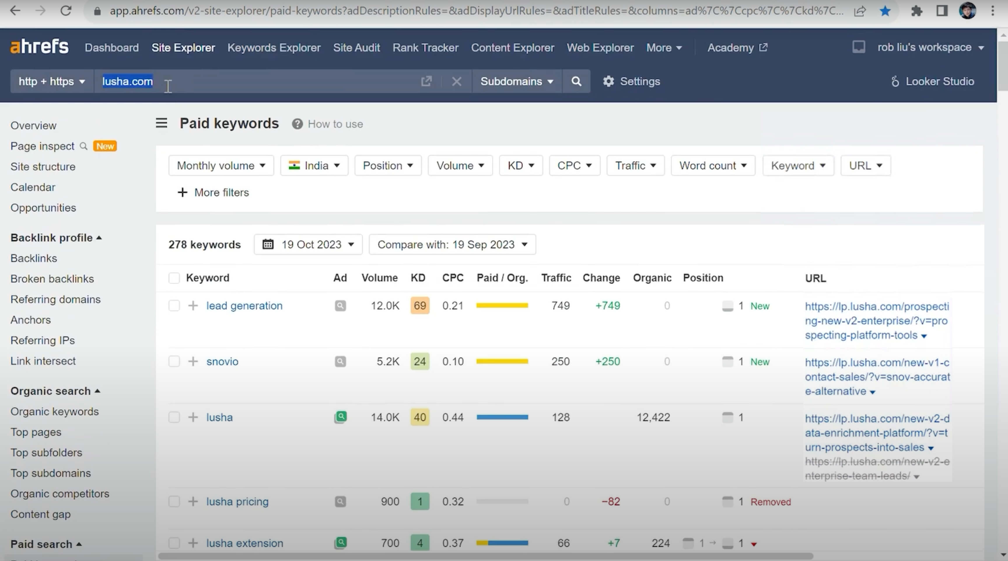 I’m able to use this tool, Ahrefs and it will tell me where my competitor Lusha is advertising.