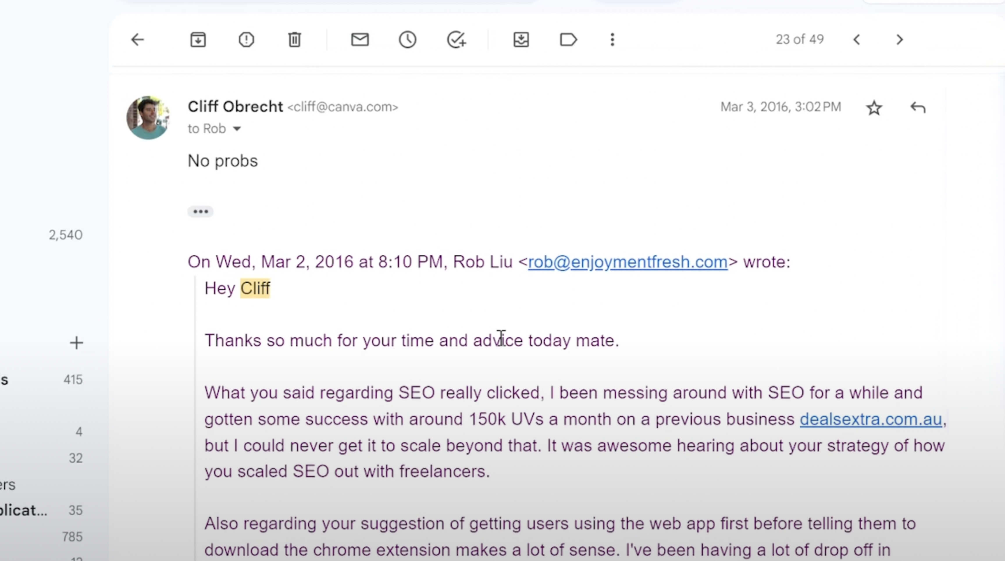 I also had the founder of Canva, Cliff gives me some tips back in the day.