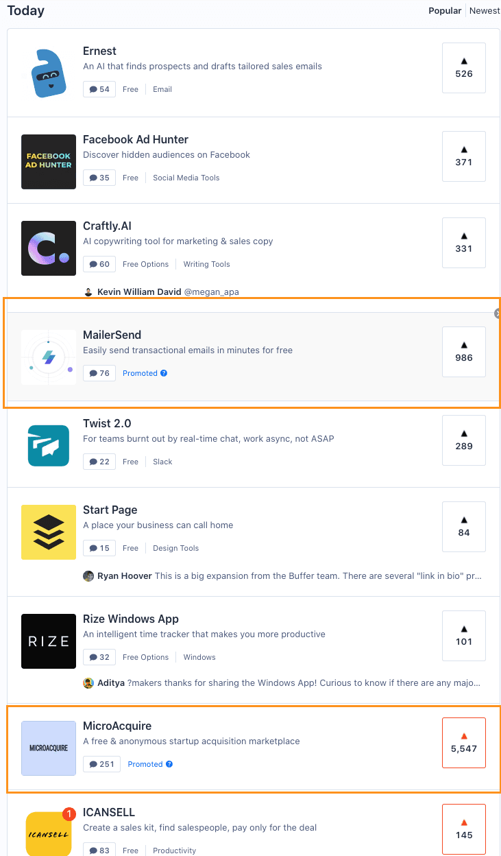 The ads will promote your product across all of our channels, each of which targets different groups that frequent Product Hunt: