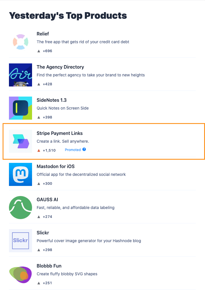 In the list of popular products from the day before. This works well for promoting your product as this is our most popular section in the newsletter. Here is an example with Stripe as the sponsor;